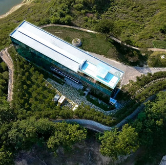 한쪽은 유리를 휘감듯 올라가는 회전 계단,